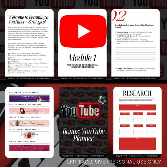 Becoming a YouTuber + Strategies E-Guide | Mini Masterclass & Workbook + BONUS YouTube Planner