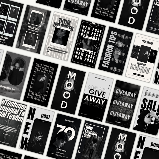SOCIAL MEDIA | 54 BLACK & CREAM RETRO ELEGANCE STORIES | Canva Template